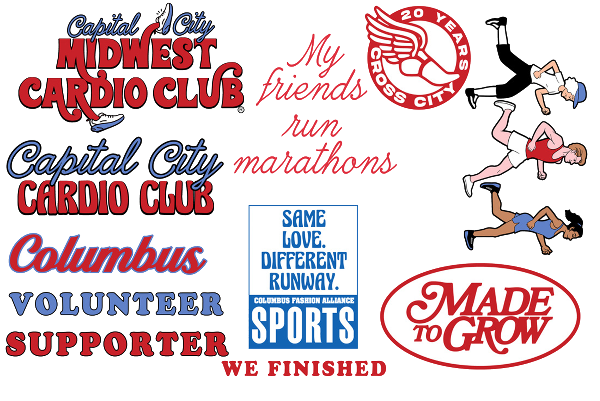 Through Columbus Fashion Alliance’s Made To Grow initiative I had the opportunity to design for the Capital City Marathon. Similiar to other releases, I proposed we created an activation that allowed runners to decorate their own tote bags with assets I provided. I made a host of assets that were centered around marathon mantras and created the tagline “My friends run marathons” for the campaign.